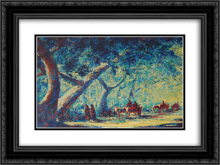 Road view 24x18 Black Ornate Wood Framed Art Print Poster with Double Matting by Monticelli, Adolphe Joseph Thomas