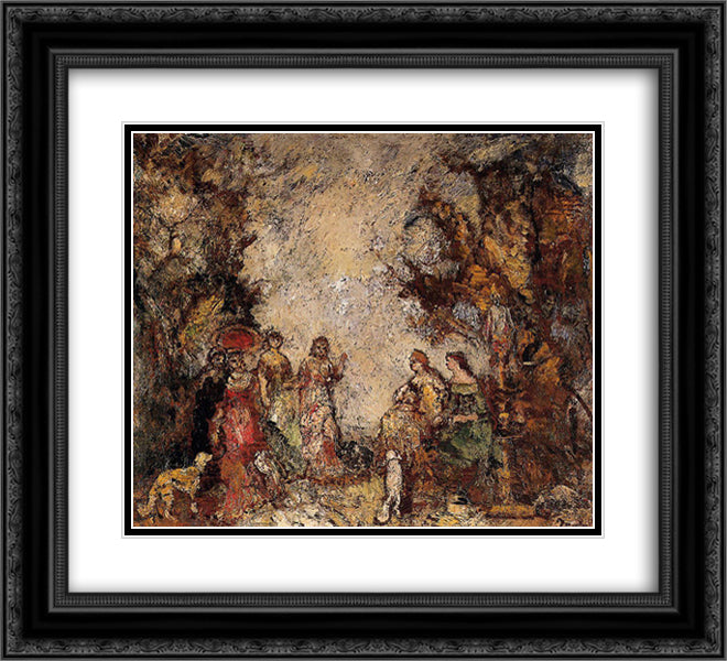 The Meeting of the Elegant Ladies 22x20 Black Ornate Wood Framed Art Print Poster with Double Matting by Monticelli, Adolphe Joseph Thomas
