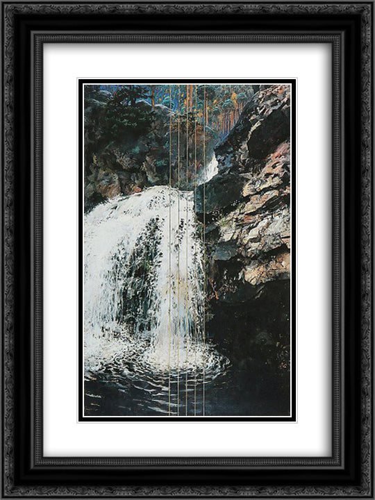 Mantykoski Waterfall 18x24 Black Ornate Wood Framed Art Print Poster with Double Matting by Gallen Kallela, Akseli