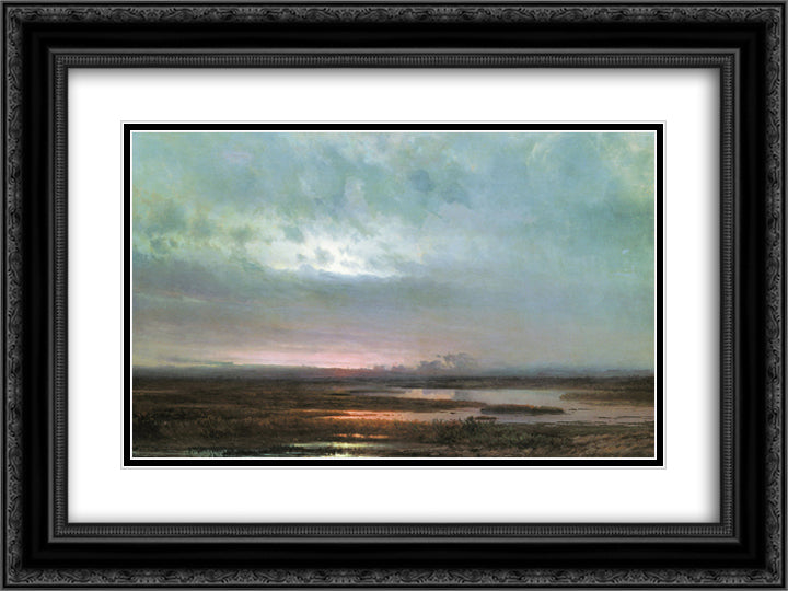 Sundown over a marsh 24x18 Black Ornate Wood Framed Art Print Poster with Double Matting by Savrasov, Aleksey