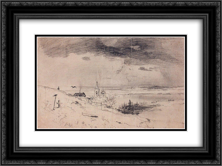 The old churchyard on the banks of the Volga 24x18 Black Ornate Wood Framed Art Print Poster with Double Matting by Savrasov, Aleksey