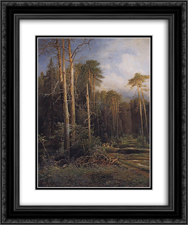 The road in the woods 20x24 Black Ornate Wood Framed Art Print Poster with Double Matting by Savrasov, Aleksey