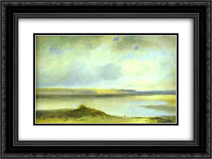 The Volga River. Vistas 24x18 Black Ornate Wood Framed Art Print Poster with Double Matting by Savrasov, Aleksey