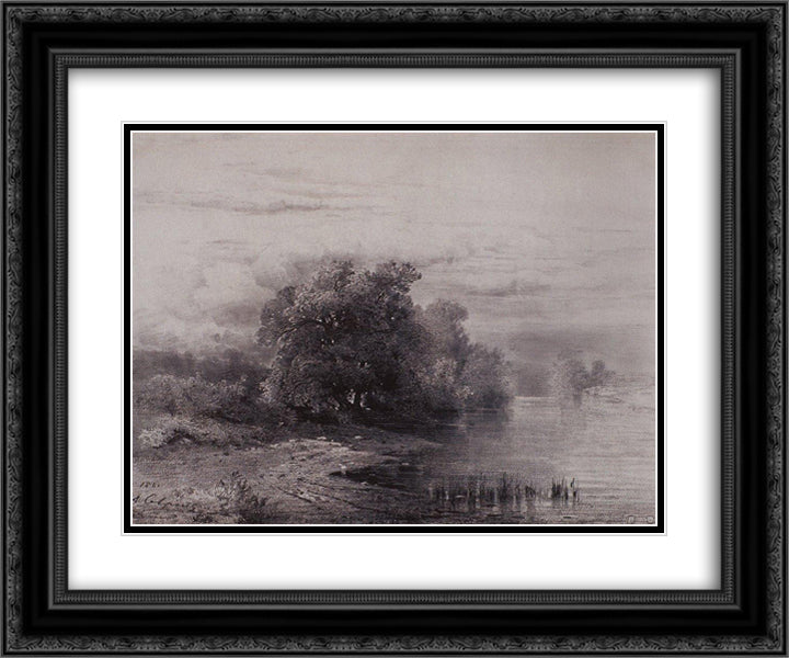 Trees by the River 24x20 Black Ornate Wood Framed Art Print Poster with Double Matting by Savrasov, Aleksey