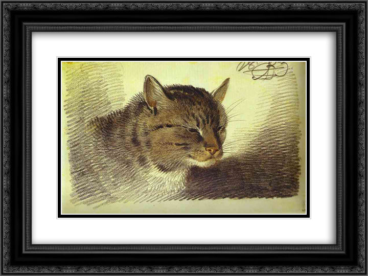 Head of a Cat 24x18 Black Ornate Wood Framed Art Print Poster with Double Matting by Orlowski, Alexander