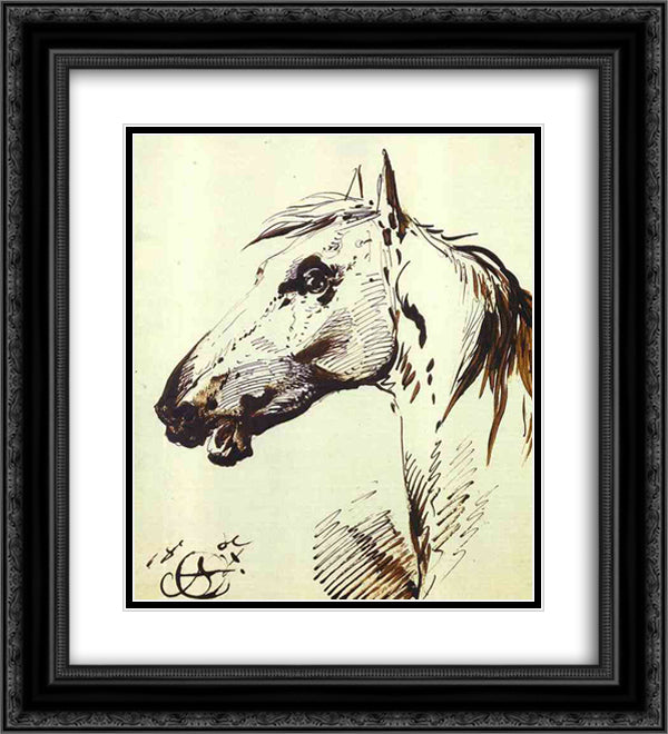 Head of a Horse 20x22 Black Ornate Wood Framed Art Print Poster with Double Matting by Orlowski, Alexander