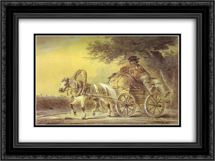 Peasant in a Cart 24x18 Black Ornate Wood Framed Art Print Poster with Double Matting by Orlowski, Alexander