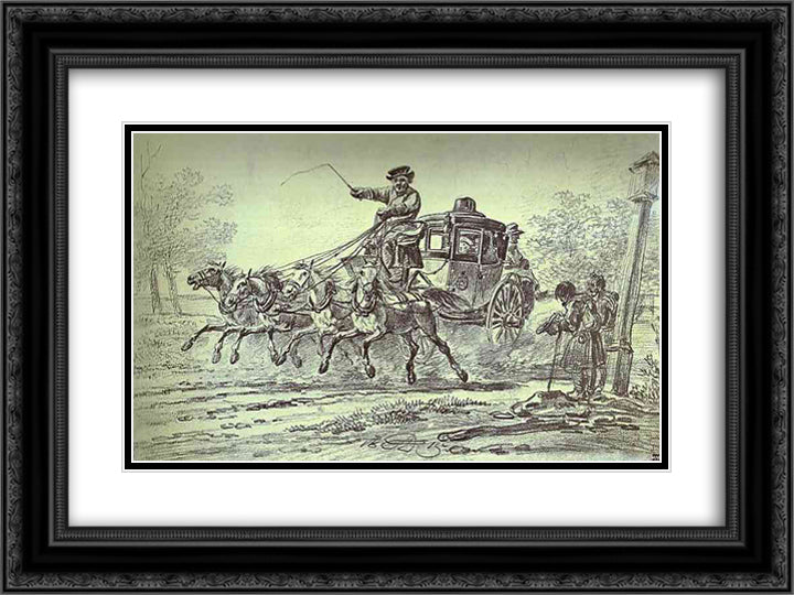 Peasants by the Carriage 24x18 Black Ornate Wood Framed Art Print Poster with Double Matting by Orlowski, Alexander