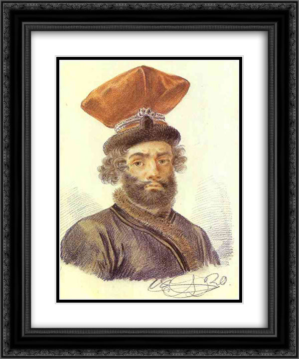 Portrait of a Cabman 20x24 Black Ornate Wood Framed Art Print Poster with Double Matting by Orlowski, Alexander