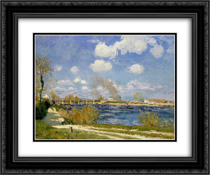 Bougival 24x20 Black Ornate Wood Framed Art Print Poster with Double Matting by Sisley, Alfred