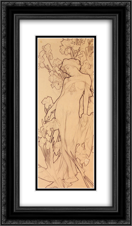 Iris 14x24 Black Ornate Wood Framed Art Print Poster with Double Matting by Mucha, Alphonse