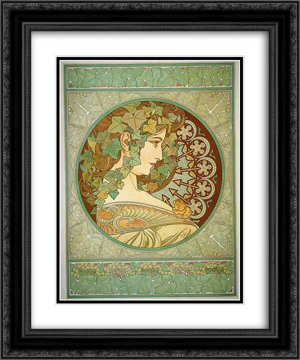 Laurel 20x24 Black Ornate Wood Framed Art Print Poster with Double Matting by Mucha, Alphonse