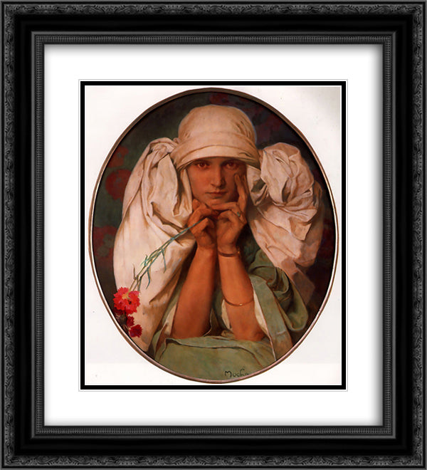 Portrait of Jiri 20x22 Black Ornate Wood Framed Art Print Poster with Double Matting by Mucha, Alphonse