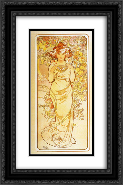 Rose 16x24 Black Ornate Wood Framed Art Print Poster with Double Matting by Mucha, Alphonse
