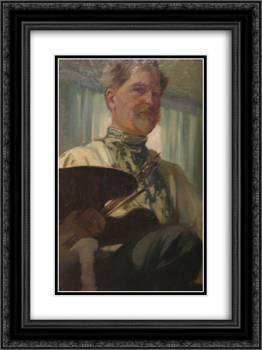 Self-portrait 18x24 Black Ornate Wood Framed Art Print Poster with Double Matting by Mucha, Alphonse