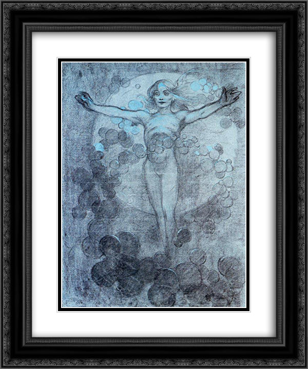 Standing Figure 20x24 Black Ornate Wood Framed Art Print Poster with Double Matting by Mucha, Alphonse