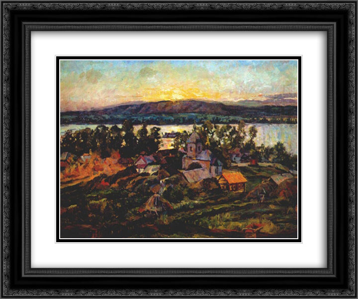 Sunset on the Volga 24x20 Black Ornate Wood Framed Art Print Poster with Double Matting by Lentulov, Aristarkh