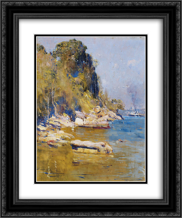 From my camp (Sirius Cove) 20x24 Black Ornate Wood Framed Art Print Poster with Double Matting by Streeton, Arthur