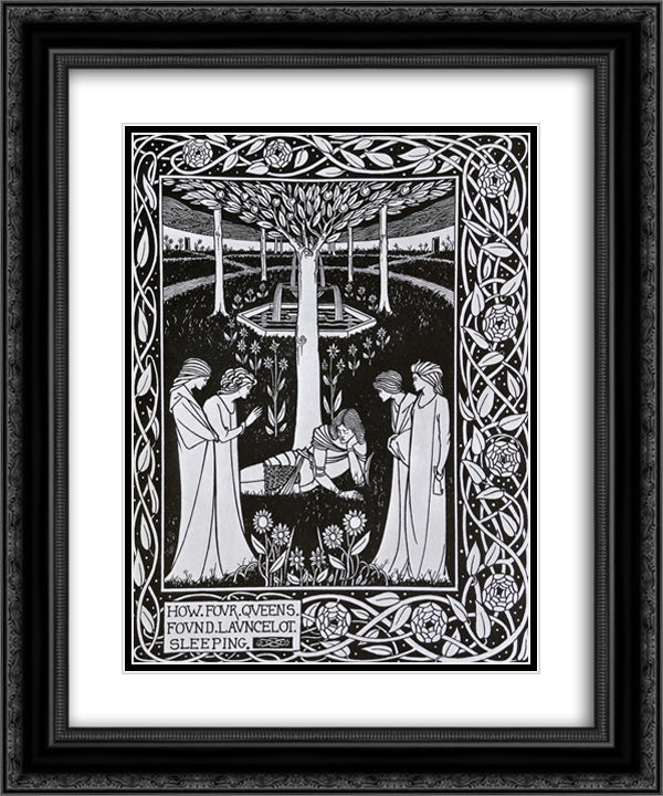 How Four Queens found Launcelot Sleeping 20x24 Black Ornate Wood Framed Art Print Poster with Double Matting by Beardsley, Aubrey