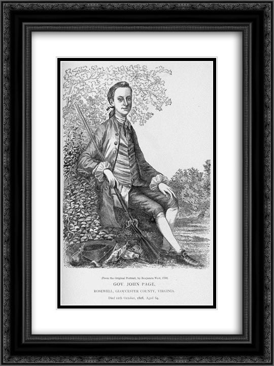 Gov. John Page of Virginia, Rosewell Plantation, Gloucester County, Virginia 18x24 Black Ornate Wood Framed Art Print Poster with Double Matting by West, Benjamin