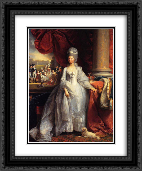 Portrait of Queen Charlotte of the United Kingdom, with Windsor and the royal family in the background 20x24 Black Ornate Wood Framed Art Print Poster with Double Matting by West, Benjamin