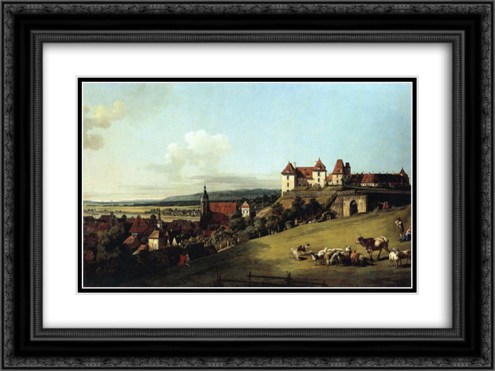 Fortress of Sonnenstein above Pirna 24x18 Black Ornate Wood Framed Art Print Poster with Double Matting by Bellotto, Bernardo