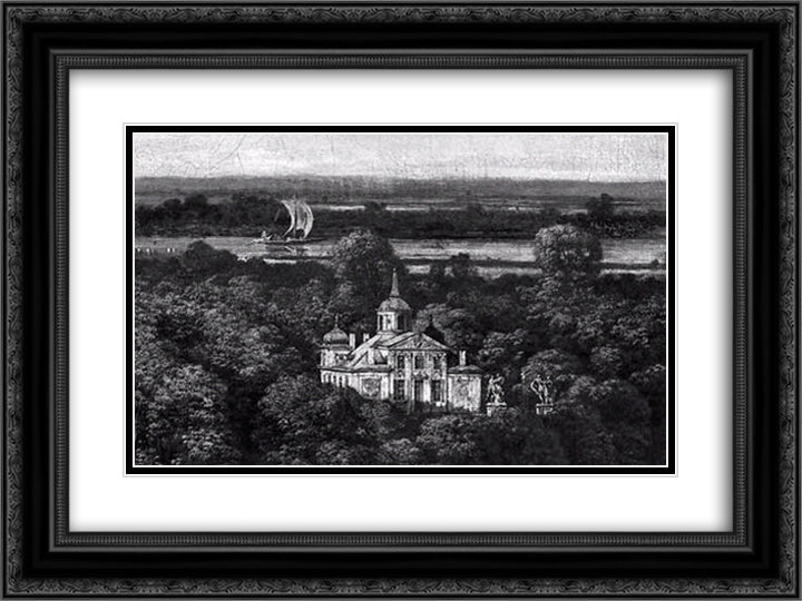 Palace on the Water in Warsaw 24x18 Black Ornate Wood Framed Art Print Poster with Double Matting by Bellotto, Bernardo