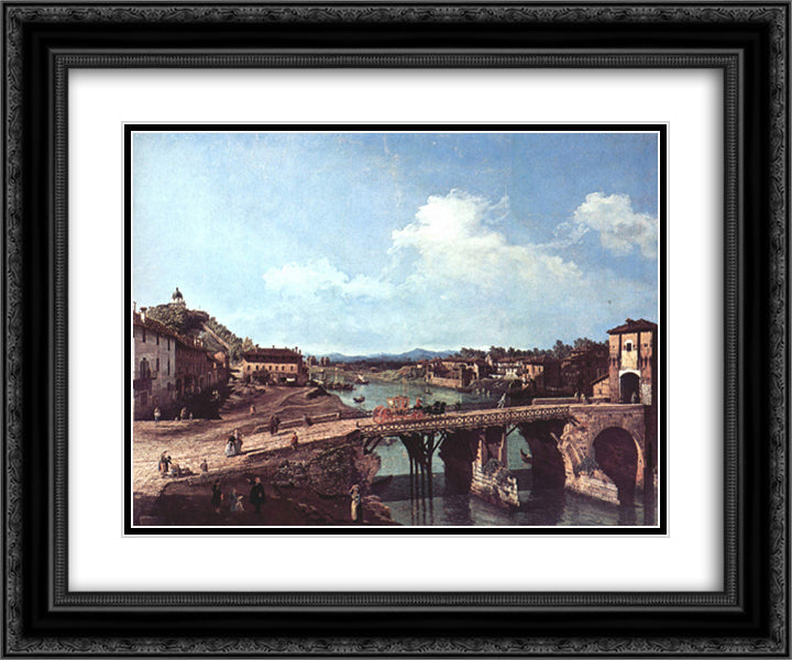 View of an Old Bridge Over the River Po, Turin 24x20 Black Ornate Wood Framed Art Print Poster with Double Matting by Bellotto, Bernardo
