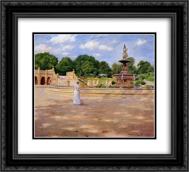 An Early Stroll in the Park 22x20 Black Ornate Wood Framed Art Print Poster with Double Matting by Chase, William Merritt