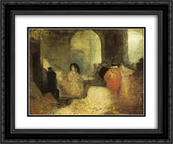 Dinner in a Great Room with Figures- in Costume 24x20 Black Ornate Wood Framed Art Print Poster with Double Matting by Turner, William