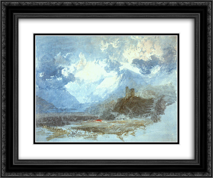 Dolbadern Castle 24x20 Black Ornate Wood Framed Art Print Poster with Double Matting by Turner, William