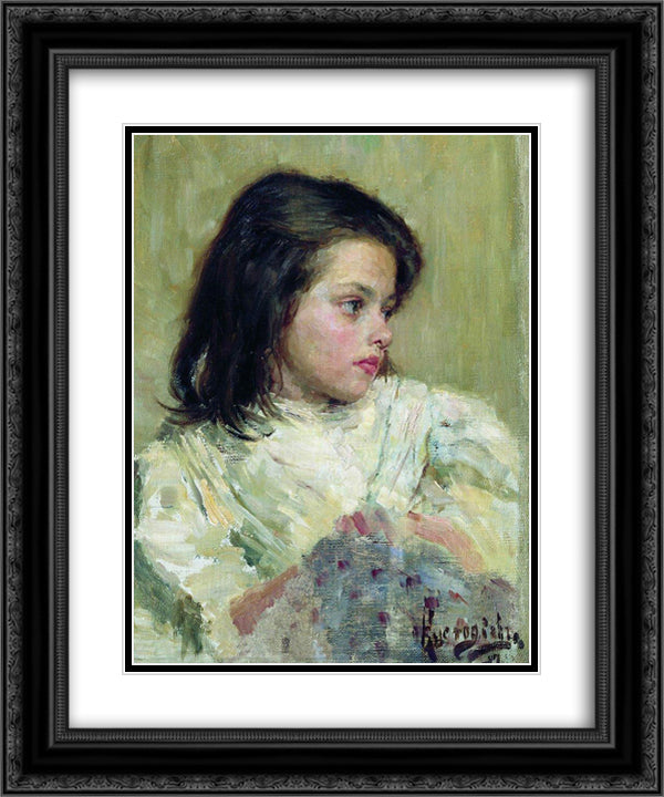 A Girl. Sketch 20x24 Black Ornate Wood Framed Art Print Poster with Double Matting by Kustodiev, Boris