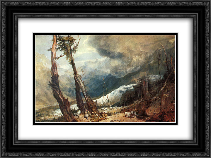 Glacier and Source of the Arveron, Going Up to the Mer de Glace 24x18 Black Ornate Wood Framed Art Print Poster with Double Matting by Turner, William