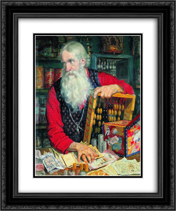 A Merchant 20x24 Black Ornate Wood Framed Art Print Poster with Double Matting by Kustodiev, Boris