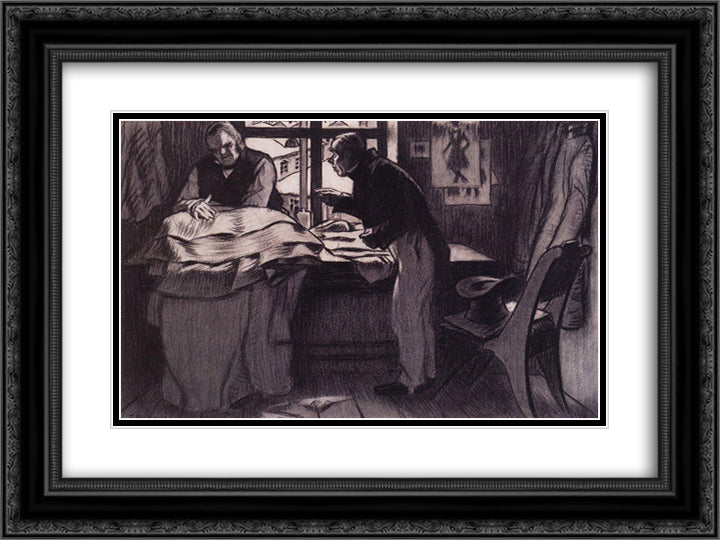 Akaky Akakiyevich visiting Petrovich 24x18 Black Ornate Wood Framed Art Print Poster with Double Matting by Kustodiev, Boris