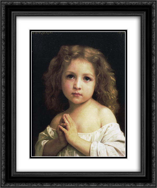Prayer 20x24 Black Ornate Wood Framed Art Print Poster with Double Matting by Bouguereau, William Adolphe