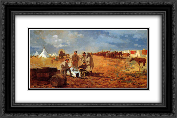 Rainy Day in Camp (also known as Camp near Yorktown) 24x16 Black Ornate Wood Framed Art Print Poster with Double Matting by Homer, Winslow