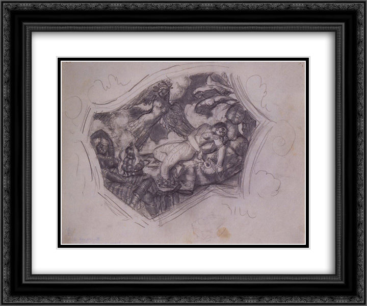 Composition with three female figures 24x20 Black Ornate Wood Framed Art Print Poster with Double Matting by Kustodiev, Boris