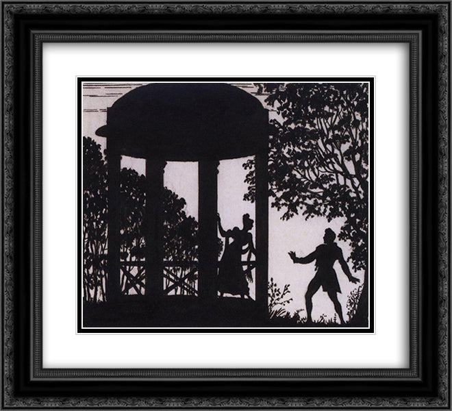 Date of Vladimir and Masha in the garden 22x20 Black Ornate Wood Framed Art Print Poster with Double Matting by Kustodiev, Boris