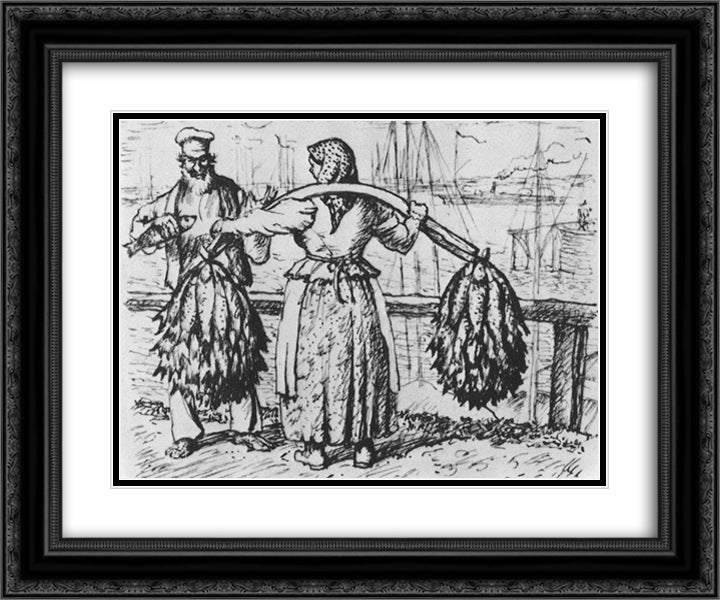 Dried fish Merchant 24x20 Black Ornate Wood Framed Art Print Poster with Double Matting by Kustodiev, Boris