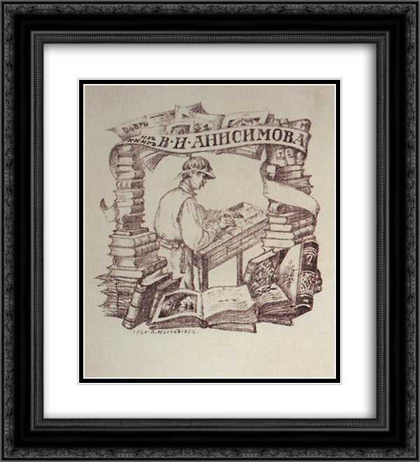 Exlibris V.I. Anisimov 20x22 Black Ornate Wood Framed Art Print Poster with Double Matting by Kustodiev, Boris