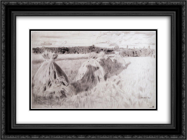 Field with sheaves 24x18 Black Ornate Wood Framed Art Print Poster with Double Matting by Kustodiev, Boris