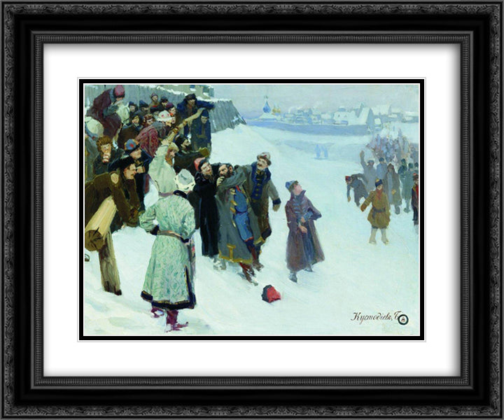 Fist fight on the Moscow River 24x20 Black Ornate Wood Framed Art Print Poster with Double Matting by Kustodiev, Boris