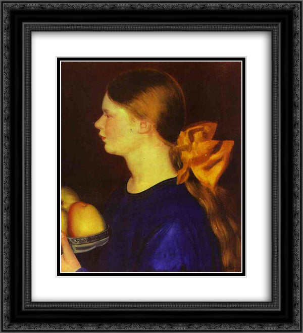 Girl with Apples (Portrait of Irina Kustodiyeva) 20x22 Black Ornate Wood Framed Art Print Poster with Double Matting by Kustodiev, Boris