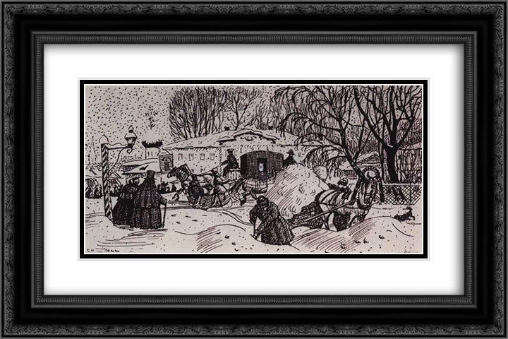 Headpiece (Winter Street) 24x16 Black Ornate Wood Framed Art Print Poster with Double Matting by Kustodiev, Boris