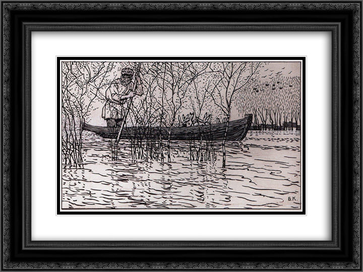 Illustration for Nikolay Nekrasov poem Grandfather Mazay and the Hares 24x18 Black Ornate Wood Framed Art Print Poster with Double Matting by Kustodiev, Boris