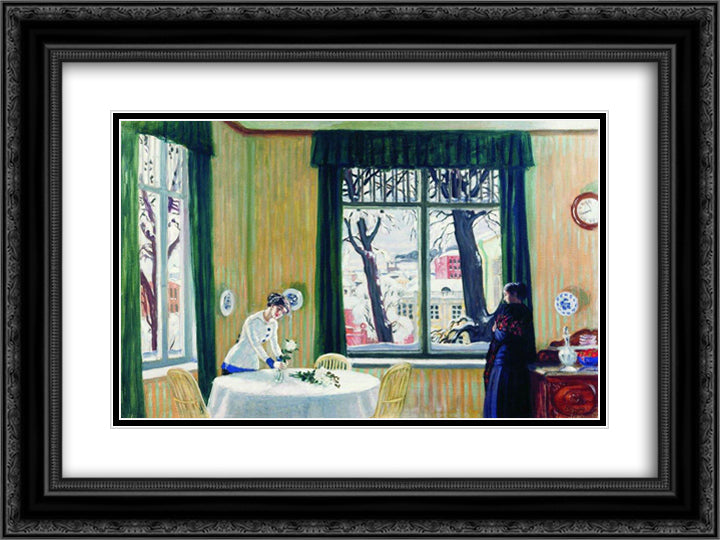 In the Room. Winter 24x18 Black Ornate Wood Framed Art Print Poster with Double Matting by Kustodiev, Boris
