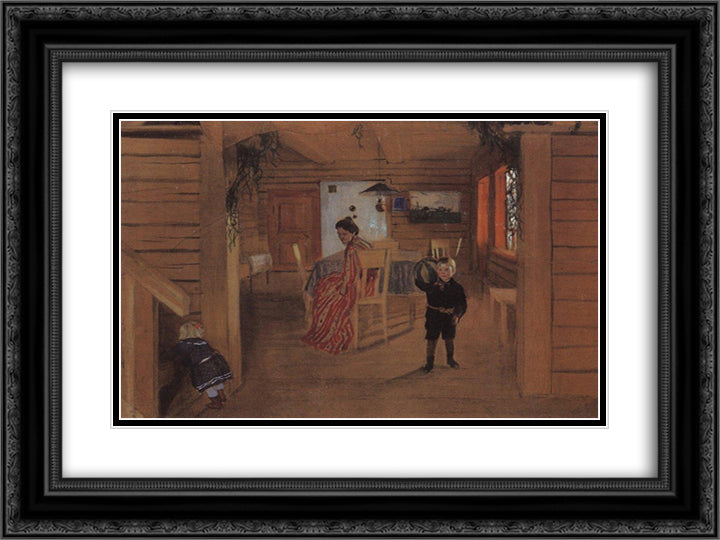 In the rooms 24x18 Black Ornate Wood Framed Art Print Poster with Double Matting by Kustodiev, Boris