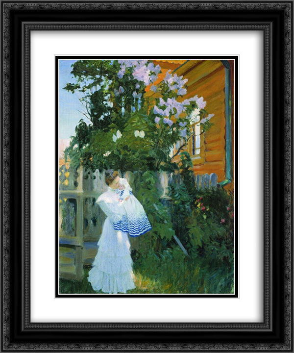 Lilacs 20x24 Black Ornate Wood Framed Art Print Poster with Double Matting by Kustodiev, Boris