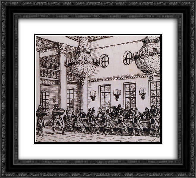 Lunch at Troyekurov 22x20 Black Ornate Wood Framed Art Print Poster with Double Matting by Kustodiev, Boris